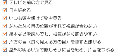 お子様にこのような症状が現れた場合には、何らかの目の障害を抱えている可能性があります。